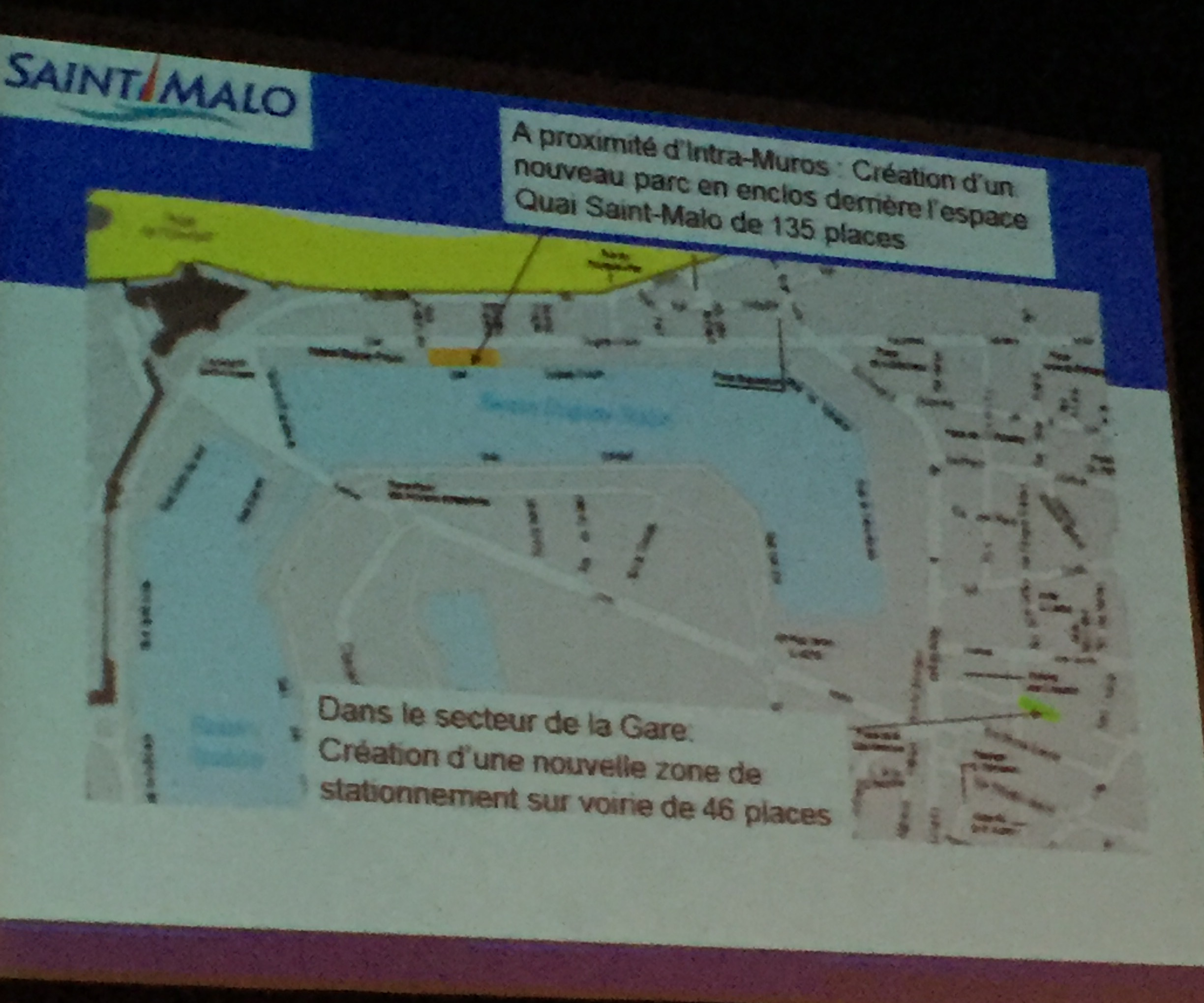 - M : Plusieurs éléments dont un nouveau parking en enclos quai Duguay-Trouin (ex parking des cars, qui n’était pas géré par la ville jusqu’à présent), l’étude urbanistique du second semestre 2015 qui donne des recommandation sur le besoin de parkings relais en entrée de ville.