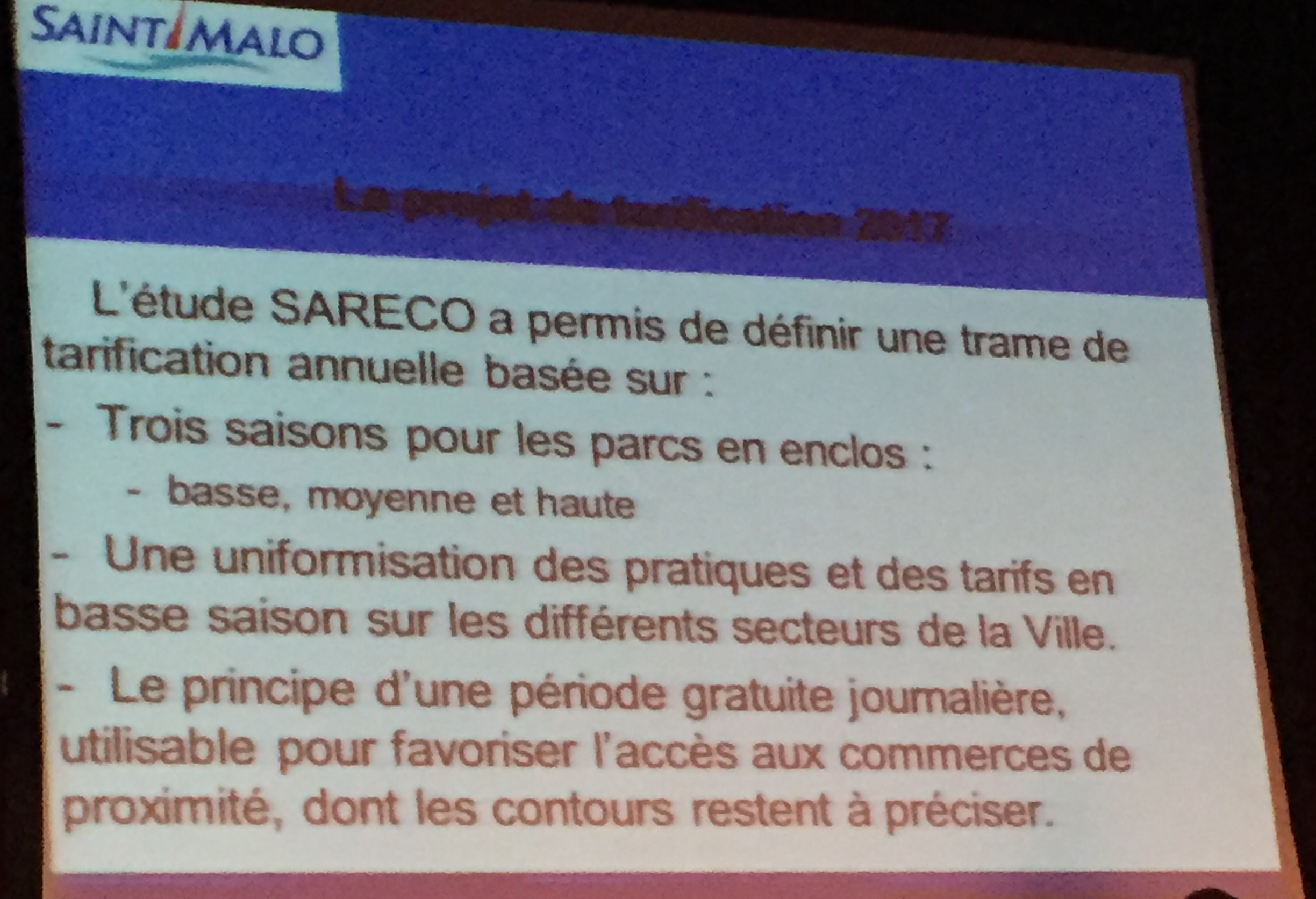 Alors qu’un second rendez-vous est programmé mardi 1er mars prochain (19h30 au Théâtre Bouvet), nous vous proposons de revenir sur la première réunion publique du 2 février sur le futur du stationnement – payant – à Saint-Malo (à partir de 2017). Ces réunions d’information et de concertation (du moins, sur le papier) donnent suite au premier volet (projet et appel d’offres) avorté fin 2015. Ce premier épisode avait déjà suscité des réactions hostiles comme à Rochebonne et Paramé.