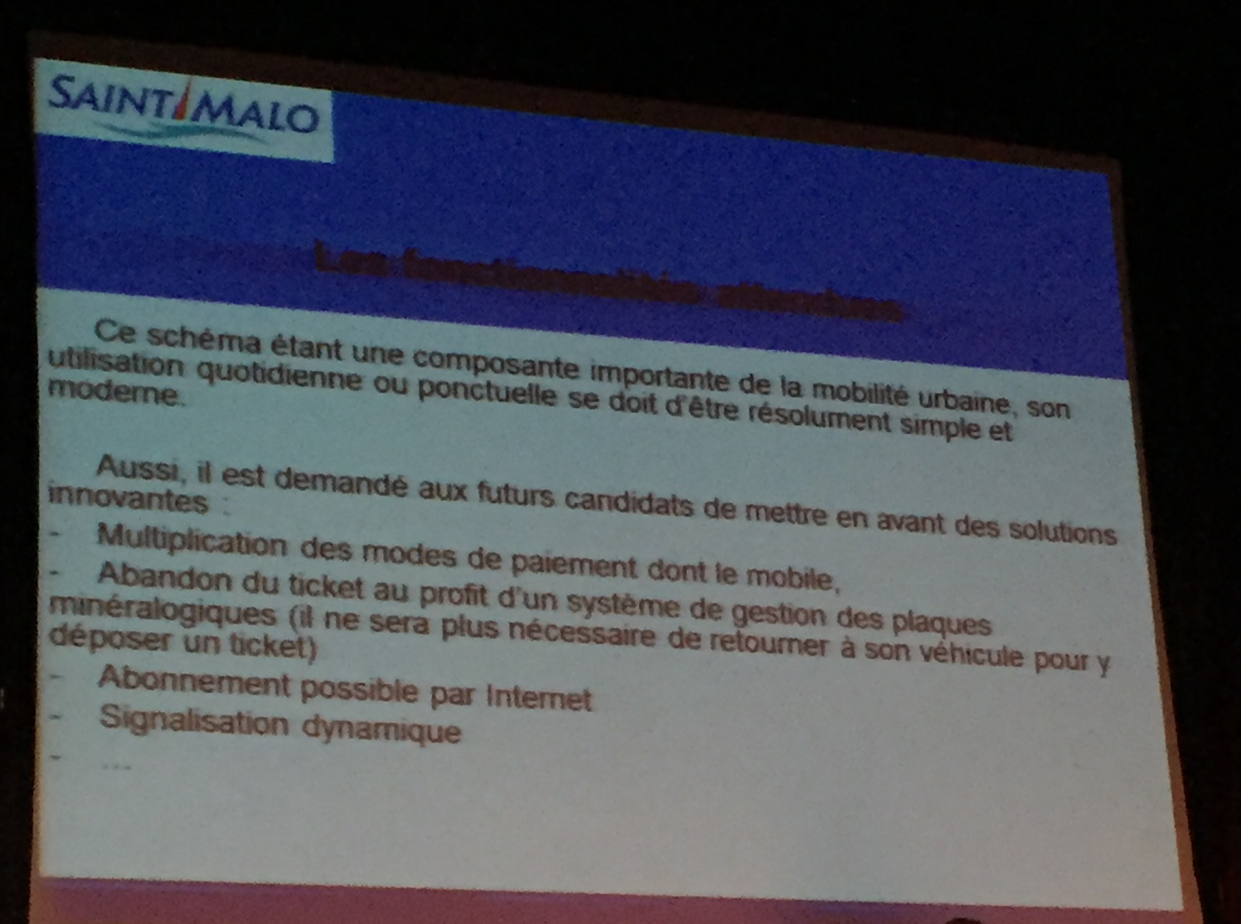 - P : Ne pourrait-t-on pas être “abonné de la ville” pour se déplacer aisément dans toute la ville ? (NDLR ce qui reviendrait à une tarification préférentielle pour les résidents malouins sur toute la zone payante)